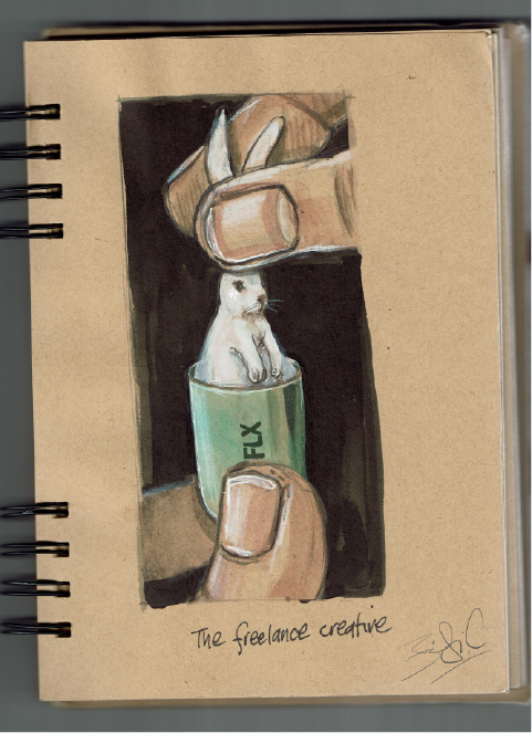 Veteran illustrator and wearable arts designer, Fifi Colston submitted a piece from her sketchbook, all around what it means to be a freelance artist. Her entry, which compared the freelance hustle to a magician’s act, where you’re constantly pulling a rabbit out of a hat in a ‘fake it til you make it’ approach, really resonated with the Hnry Awards judges.