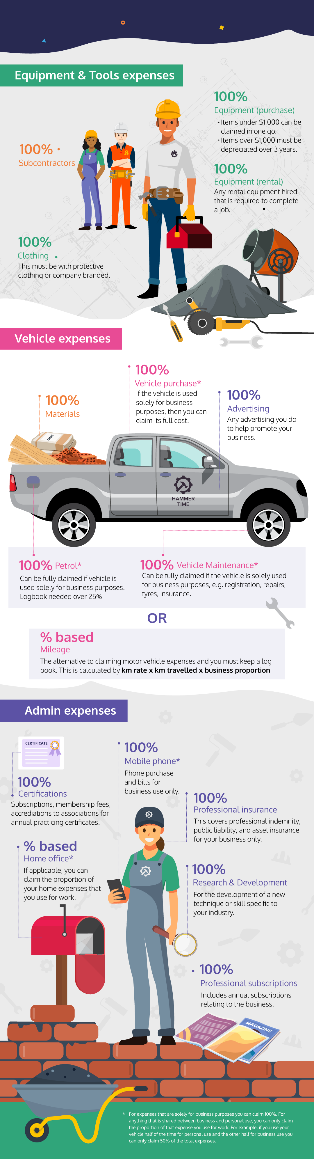 Here is a list of common expenses tradies can raise as part of their day-to-day business activity. While this list doesn’t have everything you can claim, it’s a great starting point for you to maximise your tax deductions.