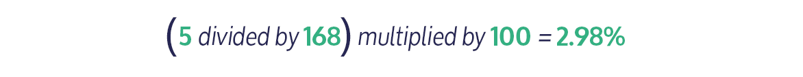 For example: You record the hours you spend working from home and establish that over the four-week period, you are working an average of 5 hours a week from home. There are 168 hours a week in total (24 hours/day x 7 days/week).