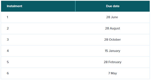Using the ratio option, you’ll pay provisional tax in 6 instalments according to the schedule below.